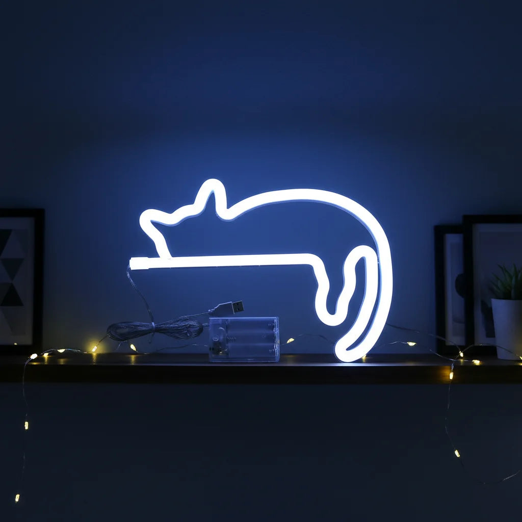 Unser Katze Neonlicht ist super flexibel! Du kannst es ganz einfach per USB-Kabel betreiben – perfekt für Steckdosen oder Powerbanks. Und das Beste? Für maximale Freiheit und überall, wo keine Steckdose ist, kannst du es auch mit Batterien nutzen! So bringst du den verspielten Charme deiner Katze überall hin, ob im Kinderzimmer, auf Partys oder als Blickfang in deinem Lieblingsraum.